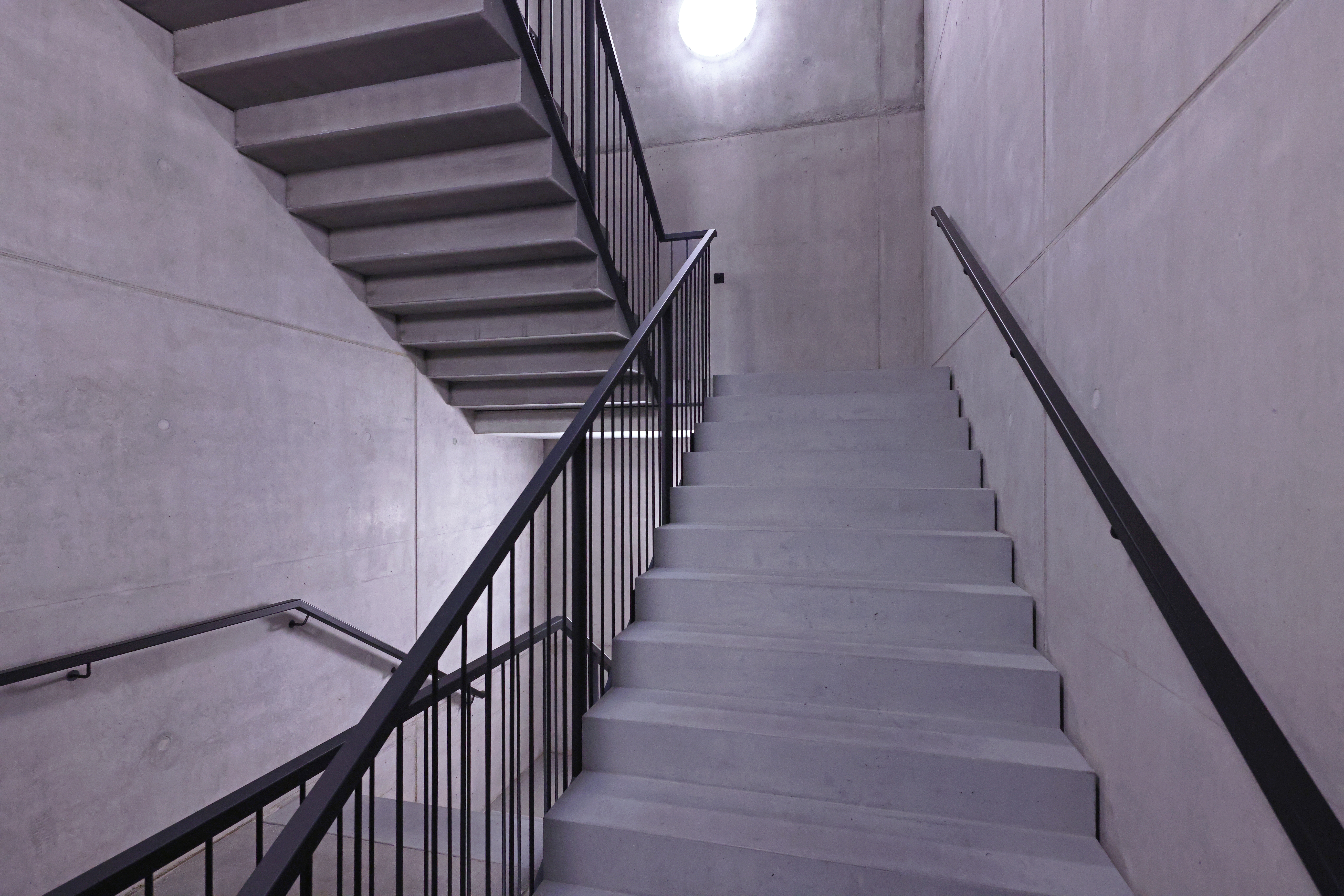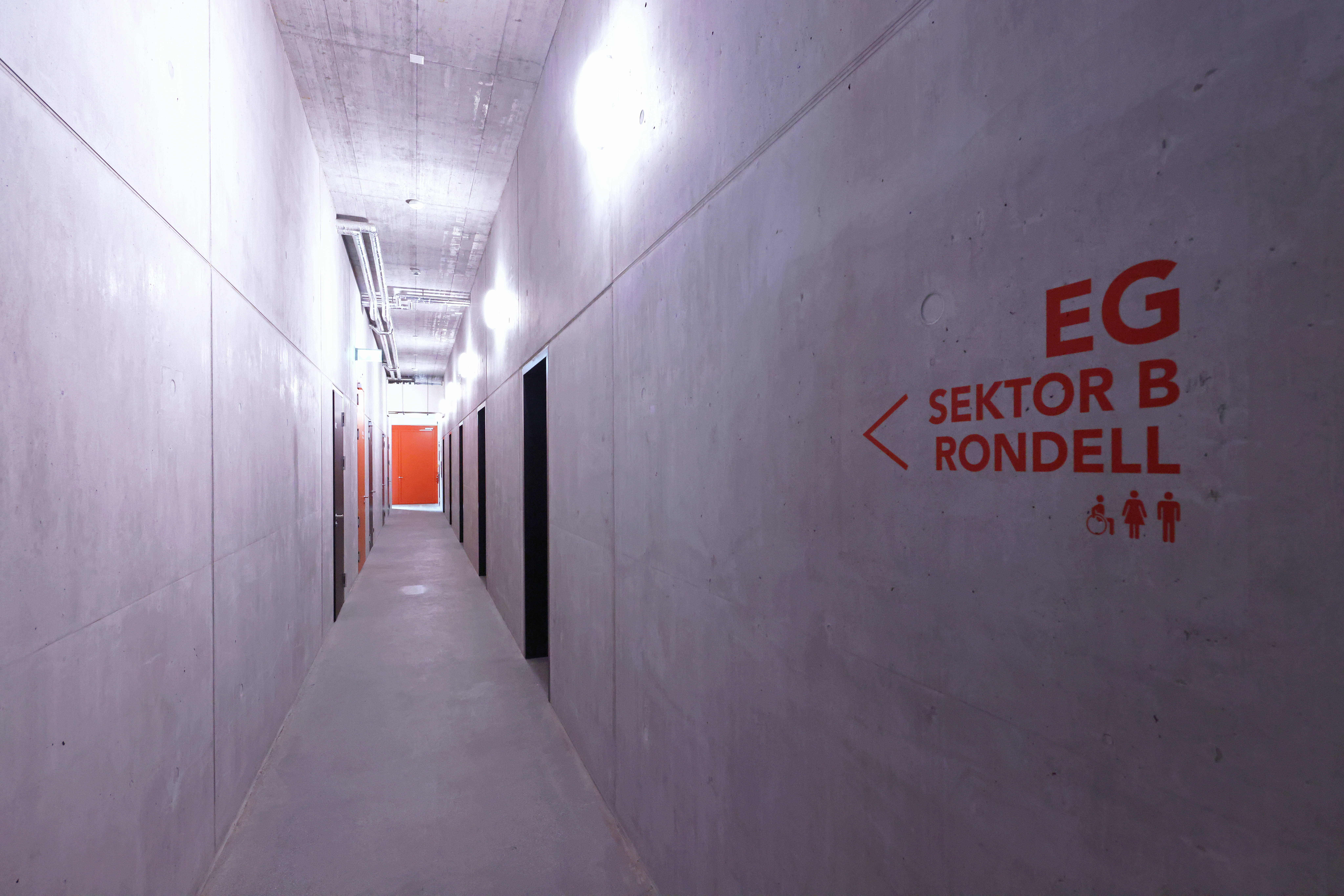 Das Gebäude ist in Sektor A, Sektor B und das Rondell unterteilt. In beiden Sektoren befinden sich auf allen drei Geschossen WC-Anlagen sowie zusätzlich eine Dusche im ersten Obergeschoss. Im Untergeschoss stehen 99 Einstellplätze für die Mieterschaft zur Verfügung. Im Aussenbereich befinden sich ausreichend Parkplätze für die Besucher des Hauses sowie Elektro-Ladestationen. Auf dem Dach ist eine grossflächige Photovoltaik-Anlage angebracht.