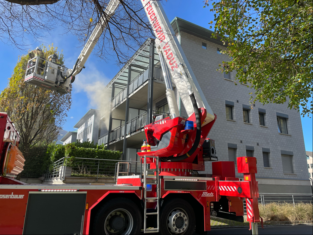 Gegen 11:00 Uhr ist es wegen einer Unachtsamkeit in einer Wohnung eines Mehrfamilienhauses zu einem Zimmerbrand gekommen. Durch die alarmierte Feuerwehr Vaduz konnte die Brandstelle rasch lokalisiert und gelöscht werden. Aufgrund der starken Rauchentwicklung in der betroffenen Wohnung und im Hausflur musste eine Person aus dem 2. OG mit dem Hubretter evakuiert werden. Im Anschluss wurde das gesamte Wohnhaus durch die Feuerwehr entraucht.