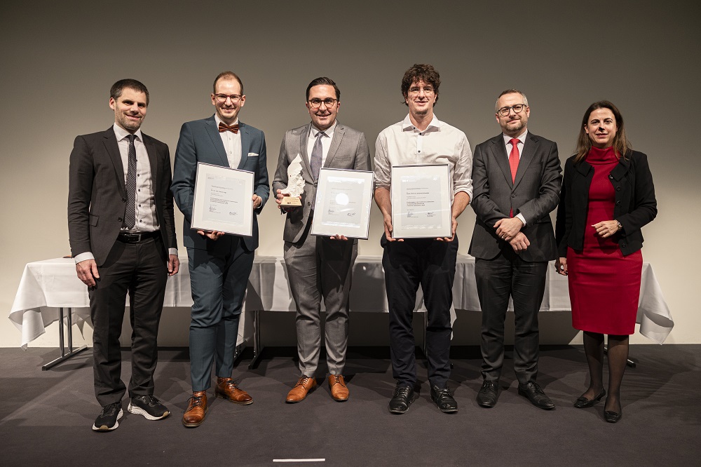 Stephan Jäger, Generalsekretär des Ministeriums, und Prof. Dr. Konstantina Papthanasiou übergaben die Diplome als Auszeichnung für herausragenden Leistungen der Nachwuchsforschenden an Dr. Djordje Zivkovic für seine Dissertation «Top Management Team Incentives and Paradox», Assoz. Prof. Dr. Johannes Schneider wurde für seine Publikation «Understanding and Leveraging the Learning Phases of Neural Networks» ausgezeichnet und Dr. Simon Liegl erhielt den Preis für sein Projekt «Affective Signalling in the Digital Workplace».