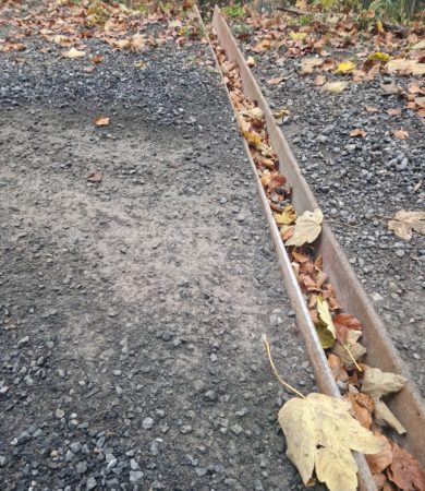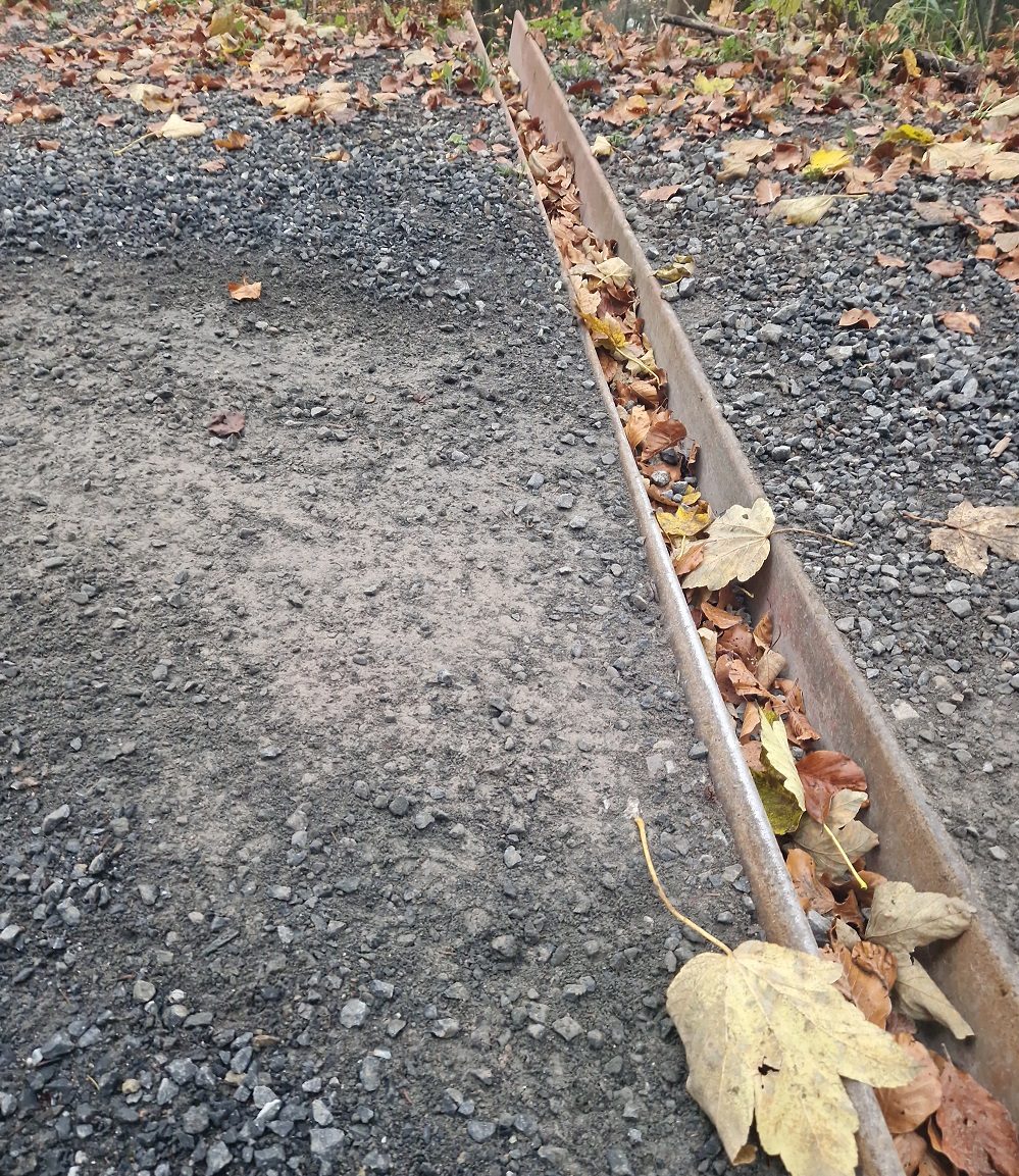 Nun wurde im Spätsommer aber dennoch, unter der Auftragsnummer „Flicken“ Hand angelegt und im beispielhaften Eifer, die schon Zentimeter hoch vorstehenden Querrinnen angeschüttet, damit sie die Felgen der vielen Radfahrer, bei ihrem Höllenritt talwärts, nicht ganz zerschmettern, falls es die zum Teil miserable Strasse nicht ohnehin schon besorgt hat. Aber so lange noch niemand zu Tode gestürzt ist, hat das ja noch Zeit. Die Materialwahl fiel auf Bruchkies der Körnung 8/15. Wir müssen hier die Begriffe: Flicken – Reparieren – Restaurieren – Erneuern auseinanderhalten, um verstehen zu lernen.