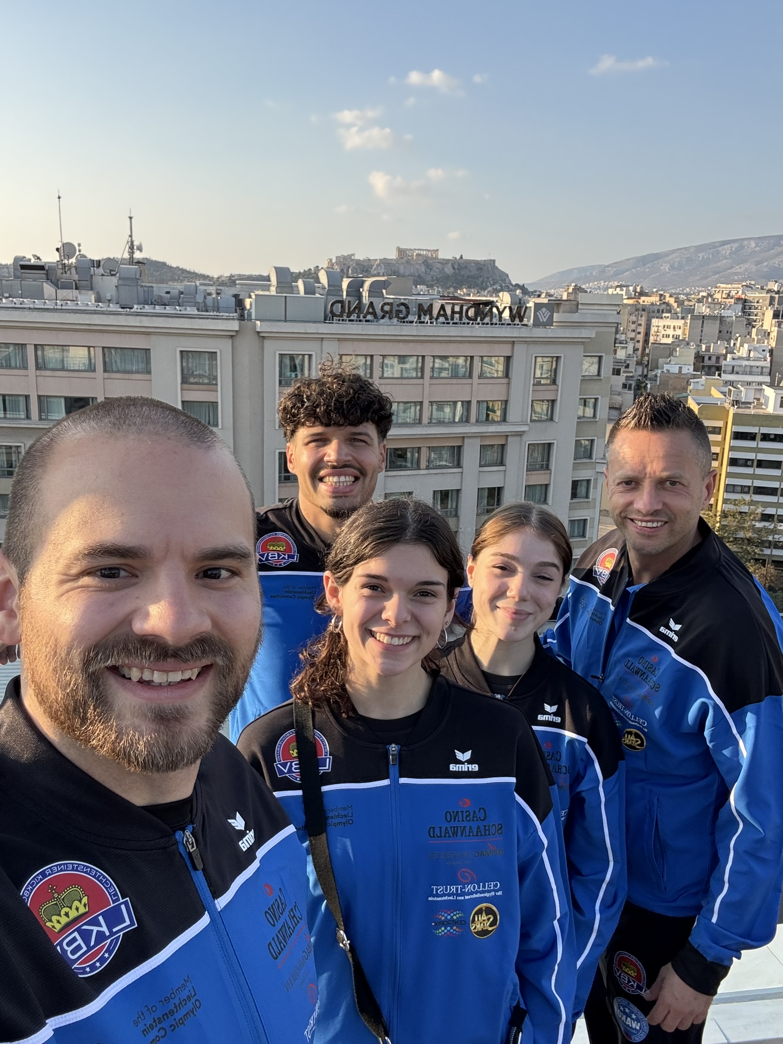 Unser fünfköpfiges Team ist gut in der griechischen Hauptstadt Athen angekommen. Am Samstag fand die offizielle Registration mit Abwaage und Medical Check statt, welchen die drei Athleten problemlos absolvierten. Nun sind alle Drei offiziell angemeldet und für die Europameisterschaft 2024 zugelassen.