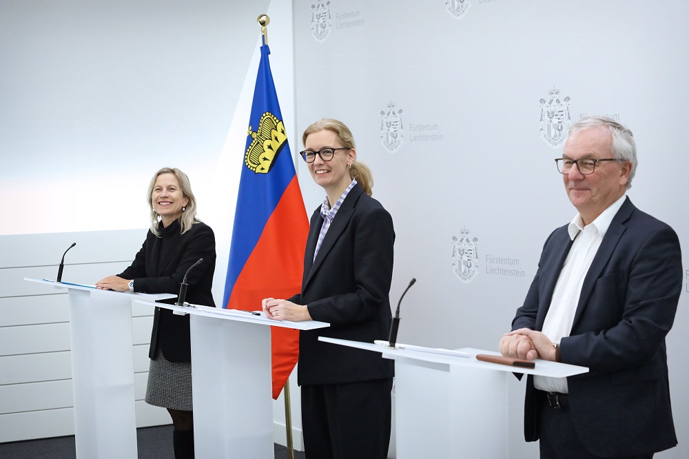 Bild: v.l.Katja Gey, Leiterin Amt für Volkswirtschaft, Regierungschef-Stellvertreterin Sabine Monauni und Gerald Marxer, Vorsitzender der Geschäftsleitung der Liechtensteinischen Kraftwerke, informierten über die Abänderung der Elektrizitätsmarktverordnung. Foto: IKR