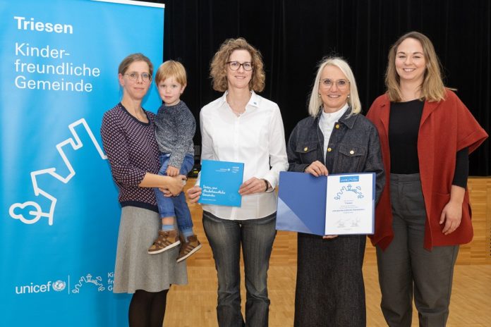 Mit der Initiative «Kinderfreundliche Gemeinde» unterstützt UNICEF Schweiz und Liechtenstein Gemeinden bei der Umsetzung der Kinderrechte auf der kommunalen Ebene und zeichnet sie für dieses Bekenntnis aus. Die Gemeinde Triesen wurde nun von UNICEF erstmals als «Kinderfreundliche Gemeinde» zertifiziert. In der Schweiz und in Liechtenstein wurden bisher 72 Gemeinden ausgezeichnet. In Liechtenstein ist Triesen die sechste «Kinderfreundliche Gemeinde». Vor ihr wurden Ruggell, Eschen, Mauren, Schaan und Vaduz das Label vergeben.