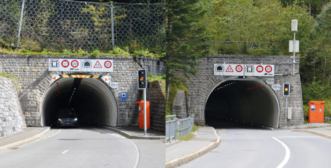 Geologen wie Bauarbeiter hatten grössere Probleme zu bewältigen, denn es mussten unterschiedliche Gesteinsschichten durchbrochen werden. Auf der Steger Seite bildete zudem das Wasser eine dauernde Herausforderung, die nach einer provisorischen Ableitung verlangte. Insgesamt mussten 20’000 Kubikmeter Fels für den 742 Meter langen Tunnel aus dem Berg geräumt werden, der eine Steigung von 2,4 Prozent vom Rheintal-Portal bis zum Ausgang ins Saminatal aufweist – was einer Höhendifferenz von 18 Metern entspricht.