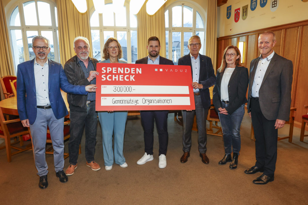 Am 27. November 2024 fand im Rathaus die Übergabe eines symbolischen Schecks im Gesamtwert von CHF 300’000.00 an das Liechtensteinische Rote Kreuz, die Caritas Liechtenstein, den Verein ROKJ Rheintal-Liechtenstein sowie den Verein Hilfe für Kinder in Kambodscha, Ruggell, statt.