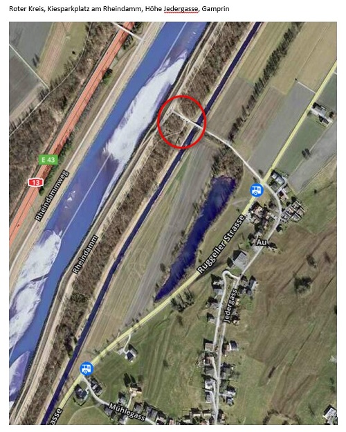 Roter Kreis, Kiesparkplatz am Rheindamm, Höhe Jedergasse, Gamprin