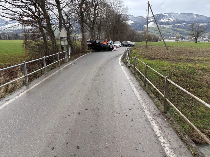 Eine 34-jährige Frau fuhr mit ihrem Auto von Kriessern kommend auf der Rietstrasse Richtung Marbach. Bei der Brücke über die Rietaach wollte die 34-Jährige gemäss eigenen Angaben einem entgegenkommenden Auto ausweichen und ihr Auto prallte gegen das Brückengeländer. Dadurch überschlug sich ihr Auto und kam auf dem Dach liegend zum Stillstand. Es wurde niemand verletzt. Am Auto der Frau und am Brückengeländer entstand Sachschaden von über 18’000 Franken.