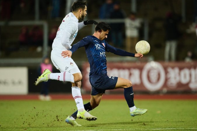 Bellinzona, ACB-FC Vaduz 1:2, am 8.12.2024. Foto: Mischa -Eberhard, FCV, rechts. Foto: Michael Zanghellini.