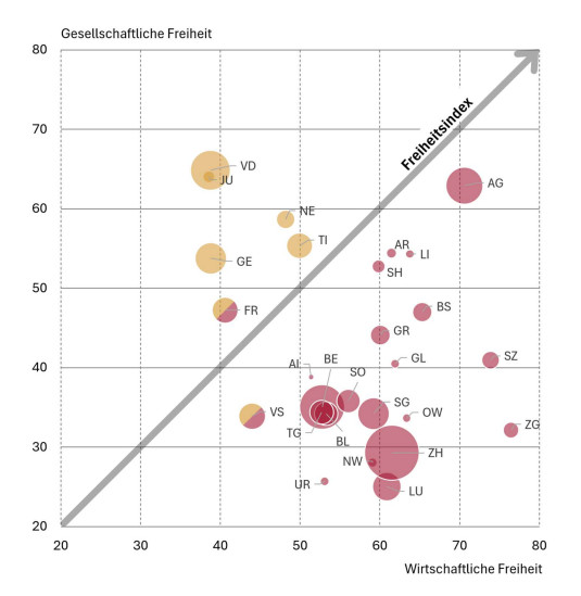 Der Freiheitsindex von Avenir Suisse beurteilt jährlich die wirtschaftlichen und gesellschaftlichen Freiheiten in den Schweizer Kantonen. Dieses Jahr wurden dafür insgesamt 29 Indikatoren ausgewertet, um herauszufinden, wie liberal die einzelnen kantonalen Gesetzgebungen ausgestaltet sind.