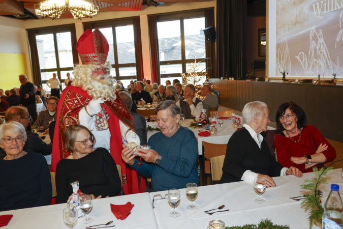 Dann wurde es auf einmal still im Saal. Der Überraschungsgast – der Nikolaus – kam zu Besuch. Dies erfreute alle sehr, wusste er doch über den Vorsteher und die Kommissionsmitglieder so einiges zu berichten. Zum Abschluss sangen alle gemeinsam das Lied «Lasst uns froh und munter sein» und die Ruggeller Seniorinnen und Senioren gingen zufrieden nach diesem schönen Anlass nach Hause, um den zweiten Advent ausklingen zu lassen. Eine rundum gelungene Weihnachtsfeier mit vielen fröhlichen und zufriedenen Gesichtern.