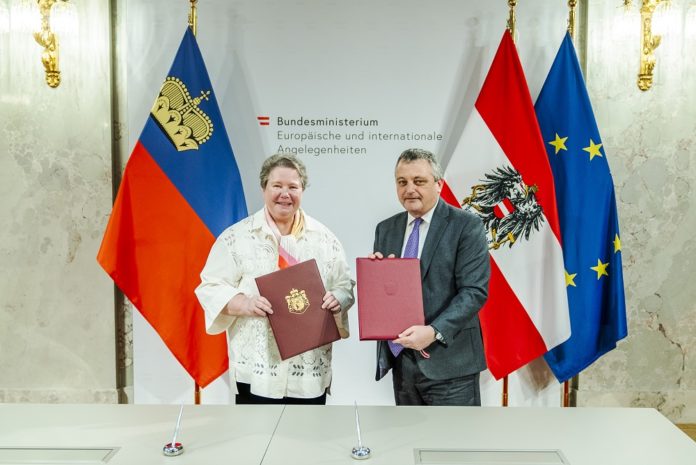Unterzeichnung des Grenzänderungsvertrag zwischen Liechtenstein und Österreich