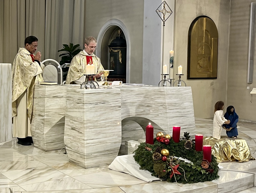 Zelebrierten gemeinsam die Messe zum 20jäjhrigen Priesterjubiläum von Marius Kaiser : der Maurer Gemeindepfarrer Pater Anto und Pfarrer Marius Kaiser. Foto: Alexandra Schedler, Sekretärin Pfarrbüro.
