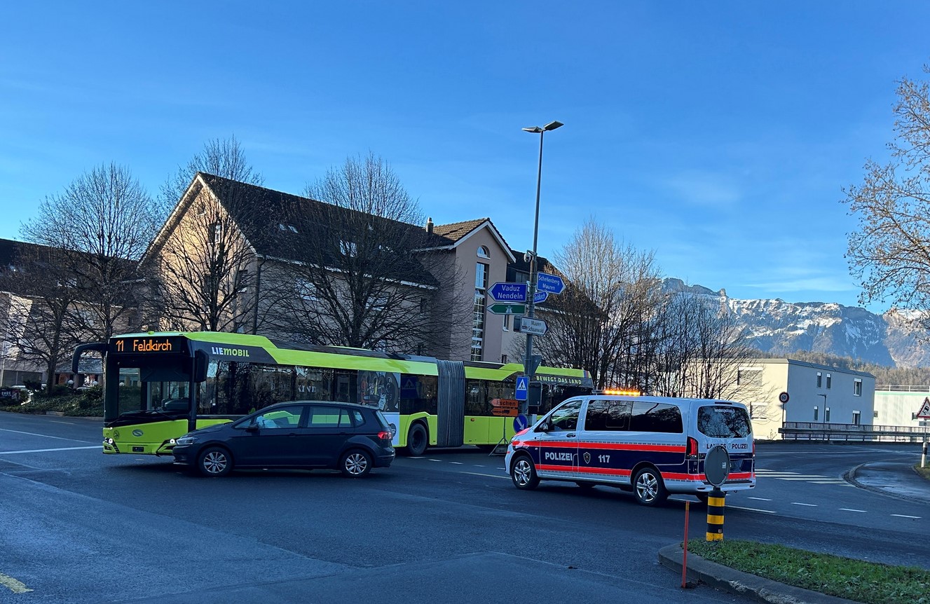 Gegen 14:00 Uhr fuhr der Lenker eines Linienbusses auf der Rietstrasse von Mauren kommend bis zur Verzweigung „Vorarlberger-Strasse“. Als er links in diese abbog, kollidierte er mit einem Personenwagen, der vortrittsberechtig in Richtung Nendeln unterwegs war. Der Autofahrer verletzte sich dabei leicht.