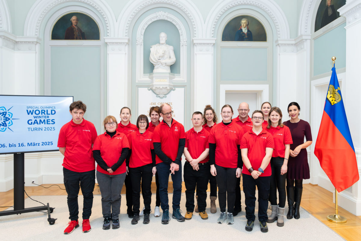 Sportministerin Dominique Hasler empfing am Donnerstag, 16. Januar 2025, die Delegation von Special Olympics Liechtenstein im Fürst-Johannes-Saal im Regierungsgebäude und verabschiedete sie zusammen mit ihren Coaches sowie Familienmitgliedern an die Weltwinterspiele in Turin, die vom 8. bis zum 16. März 2025 stattfinden.