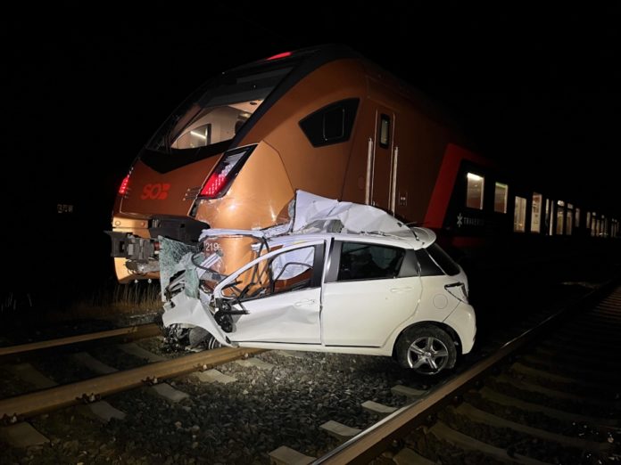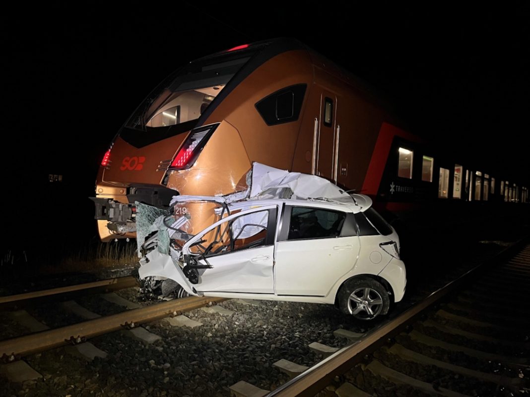 Gemäss jetzigen Erkenntnissen fuhr eine 83-jährige Frau mit ihrem Auto auf dem Weidweg über den Bahnübergang. Aus bislang unbekannten Gründen kam das Auto beim Überqueren der Gleise zum Stillstand. Als sich die Barrieren schlossen, konnten die Frau und ihr 10-jähriger Mitfahrer das Auto rechtzeitig vor dem herannahenden Zug verlassen und blieben dadurch unverletzt. In der Folge prallte der Zug gegen das Auto. Dieses wurde mehrere hundert Meter von Zug mitgeschleift und kam auf den Gleisen mit Totalschaden zum Stillstand.