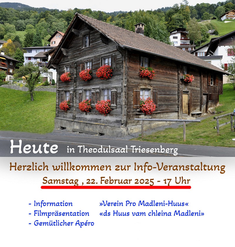 Benannt nach seiner letzten Bewohnerin Magdalena Schädler «ds Chlei Madleni» ist das Madleni-Hus seit 1996 im Besitz der Gemeinde Triesenberg. Das 200 Jahre alte Walserhaus mitten im Dorf ist eines der letzten seiner Art und hat für die Siedlungs-Familien -und Wirtschaftsgeschichte Triesenbergs eine besondere Bedeutung.