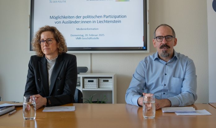 Der Verein Vielfalt in der Politik (ViP) und der Verein für Menschenrechte in Liechtenstein (VMR) haben heute ihren gemeinsamen Abschlussbericht zur politischen Partizipation von Ausländerinnen und Ausländern vorgestellt. Andrea Hoch (ViP) und Christian Blank (VMR) präsentierten die Ergebnisse des eineinhalbjährigen Projekts, das passend nach den Landtagswahlen abgeschlossen wurde.