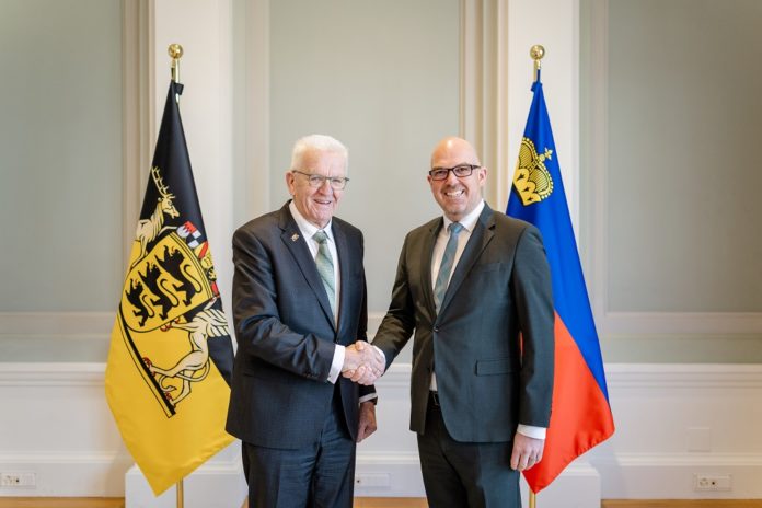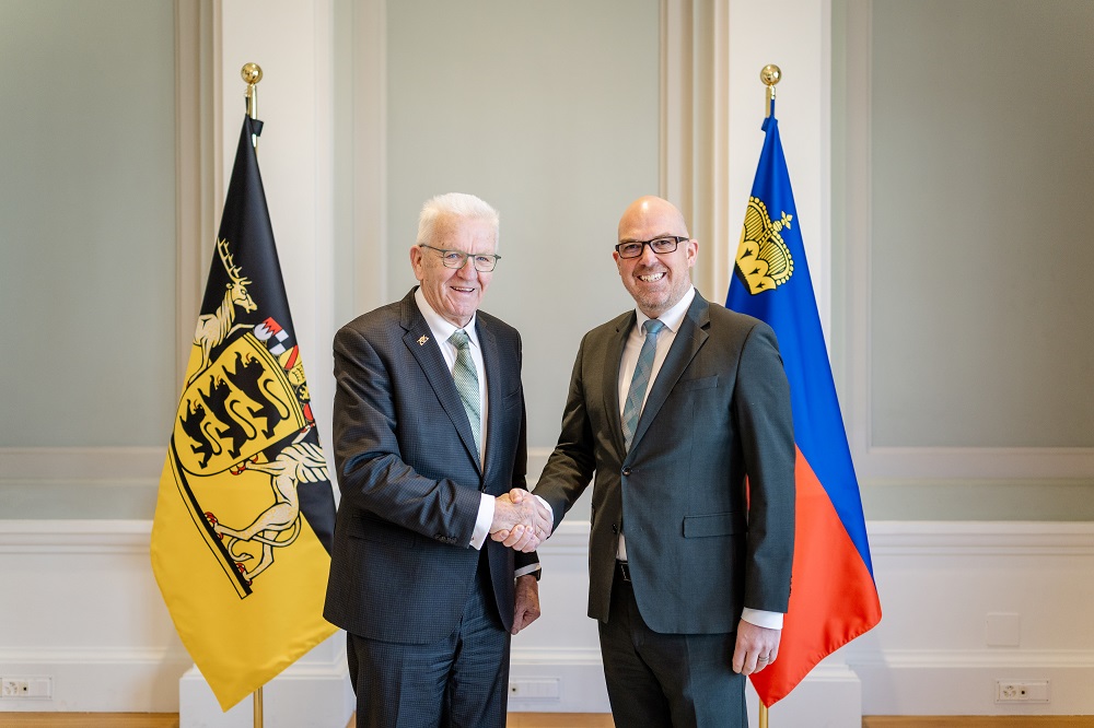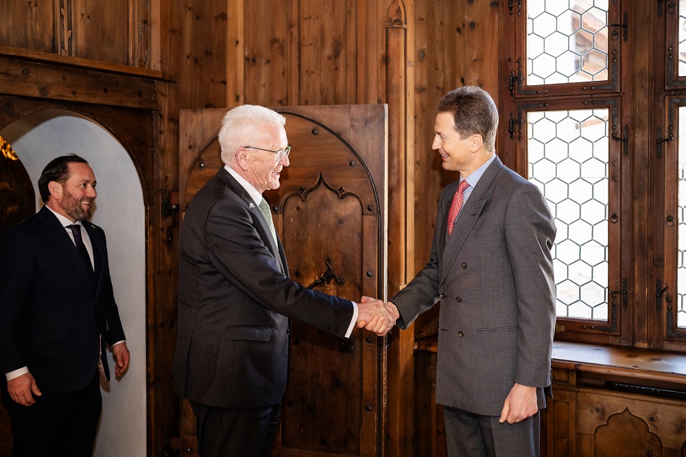 Im Anschluss an den Eintrag in das Buch für Ehrengäste fand ein Vier-Augen-Gespräch zwischen Regierungschef Risch und dem Ministerpräsidenten Kretschmann statt.