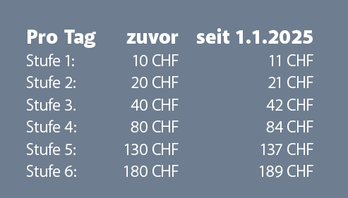 Dieser Forderung der Postulanten ist die Regierung per Verordnung vom 1. Januar 2025 (LGBl. 2024 Nr. 420) nachgekommen, in dem die Tarife der einzelnen Pflegestufen um jeweils 5 % (gerundet auf den nächsten Franken) gemäss der Entwicklung des Landesindexes der Konsumentenpreise erhöht wurden.