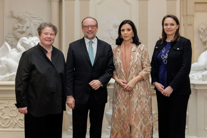 Während ihres Aufenthaltes lud Botschafterin Maria-Pia Kothbauer zum traditionellen Abendessen im Stadtpalais Liechtenstein ein. Der Anlass dient der Würdigung der engen Zusammenarbeit in den verschiedenen Bereichen der Verwaltung, Politik und Diplomatie und waren zahlreiche hochrangige österreichische und internationale Persönlichkeiten unter den Gästen. So beispielsweise Bundeskanzler und Aussenminister Alexander Schallenberg, der Präsident des Nationalrates Walter Rosenkranz, sowie die Stellvertretende Vorsitzende des ukrainischen Parlaments Olena Kondratiuk.