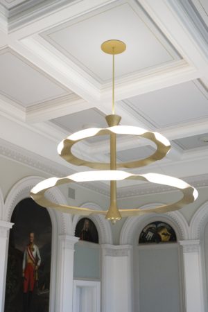 Neben seiner primären Funktion als Lichtquelle entfaltet der Lüster eine starke visuelle Wirkung. Durch sein Design, seine Dimensionen und das durchdachte Lichtkonzept ist er prägend für die Atmosphäre im Fürst Johannes Saal und trägt massgeblich dazu bei, dass der Raum auch künftig ein attraktiver Ort für offizielle Anlässe und Empfänge sein wird.