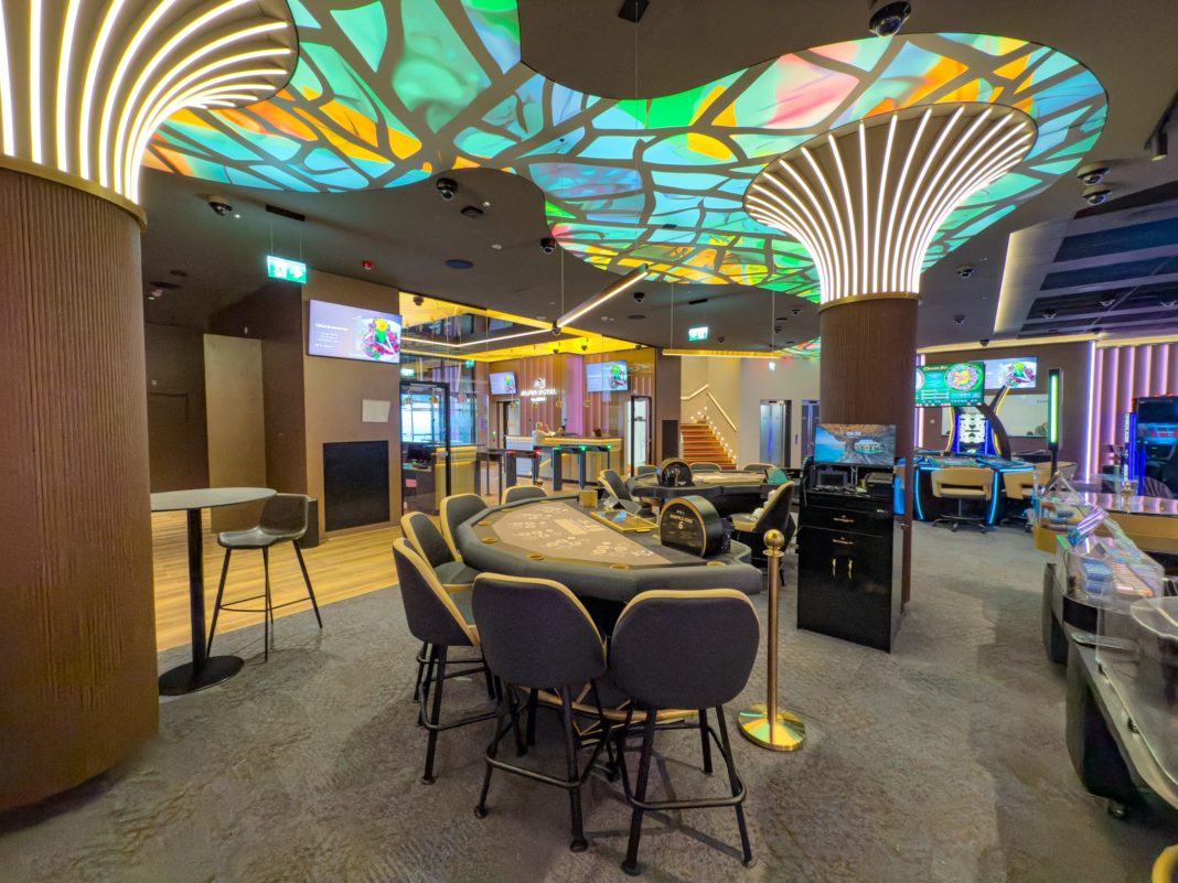 Nach einer Projektphase von insgesamt über fünf Jahren sowie einer Bauzeit von mehr als zwei Jahren öffnete das Alpin Royal Casino am Freitag, 21. März 2025 seine Türen und empfing die ersten Gäste. Auf zwei Etagen und einer Fläche von über 2‘000 m2 stehen den Gästen insgesamt 210 Spielautomaten der neuesten Generation der Hersteller Amatic, Novomatic, Golden Games, EGT, Aristocrat und Apex zur Verfügung. Zudem stehen verschiedene Jackpots zur Verfügung, welche Gewinne bis zu maximal 150‘000 CHF ermöglichen.
