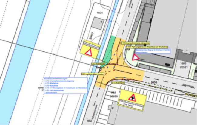 In diesem Zusammenhang entsteht eine neue Rabatte bzw. Grünfläche am Rand gegenüber beim Kanaldamm. Die angepasste Verkehrsführung wird durch den Gemeinderat zur Kenntnis genommen.