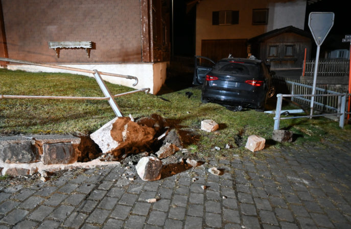 Ein Auto, besetzt mit vier Personen, fuhr gegen 22:40 Uhr auf der Bergstrasse in Triesenberg in Richtung Malbun. Dabei überholte der Autolenker ein vor ihm fahrendes Auto. Aufgrund der überhöhten Geschwindigkeit und den fehlenden Ortskenntnissen wurde er von der Linkskurve Höhe „Im Steinort“ überrascht. In der Folge kollidierte das Fahrzeug mit der dortigen Steinmauer und durchbrach den dort befindlichen Eisenzaun. Das Fahrzeug kam schlussendlich im Vorgarten eines Hauses zum Stillstand. Durch den Aufprall wurde die Fahrzeugfront massiv beschädigt, wobei der Motorblock nach kurzer Zeit Feuer fing. Die vier Insassen konnten noch rechtzeitig eigenständig aus dem Auto steigen. Beim Eintreffen der Polizei stand das Fahrzeug bereits im Vollbrand. Der Brand wurde umgehend von der Feuerwehr gelöscht.