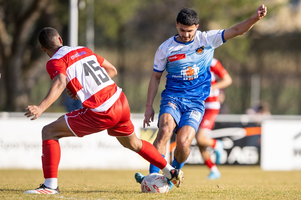 Foto: Doppeltorschütze Josiah Daniel (r.) im Zweikampf . Foto: Jürgen Posch
