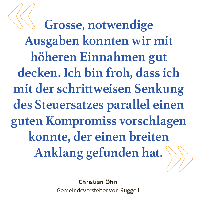 Bei der Senkung des Gemeindesteuerzuschlags hat sich Ruggell für eine schrittweise Lösung entschieden. Er soll weiterhin um 5 Prozent pro Jahr reduziert werden, bis 150 Prozent erreicht sind. Wie geht die Rechnung auf?