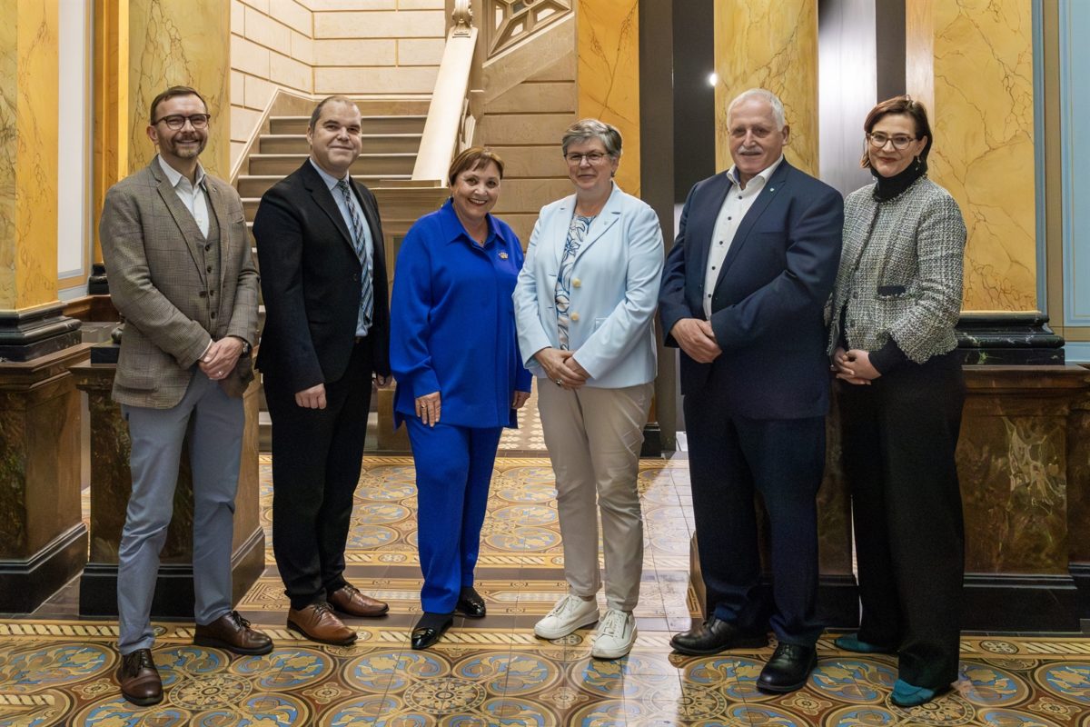 Im Rahmen des 3. Luziensteig-Treffens am 22. Mai begrüssten die Bündner Standespräsidentin Silvia Hofmann und Standesvizepräsidentin Valérie Favre Accola die Kantonsratspräsidentin Barbara Dürr und den Kantonsratsvizepräsidenten Walter Freund aus St. Gallen sowie den Landtagspräsidenten Manfred Kaufmann zu einem Gesprächsaustausch in Chur. Auf dem Programm stand zudem ein Besuch im Churer Domschatzmuseum. Im Anschluss empfing Bischof Joseph Maria Bonnemain die Gäste im Rittersaal
