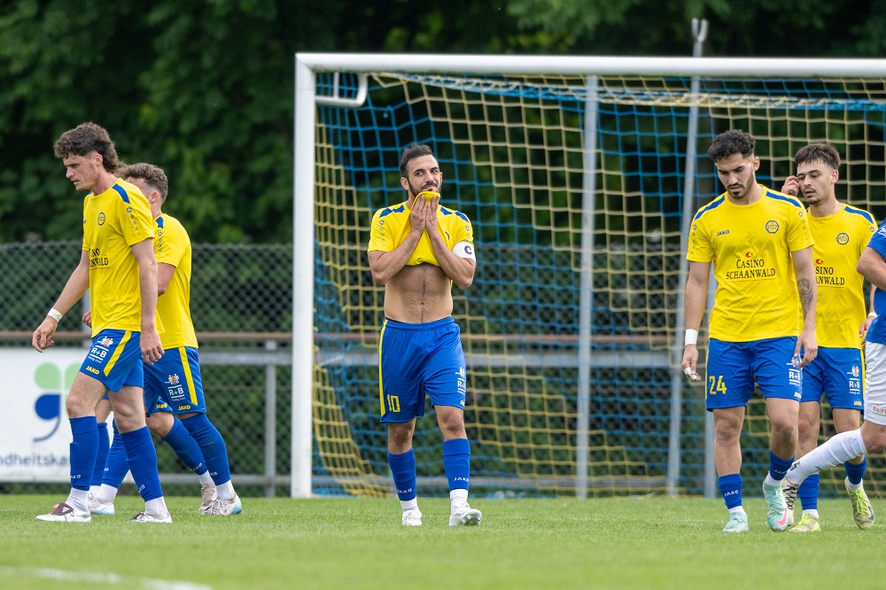 Frust beim FC Balzers nach der 0:3-Niederlage im Spitzenspiel im Kampf um den 1.Liga-Aufstiege. Foto: Jürgen Posch
