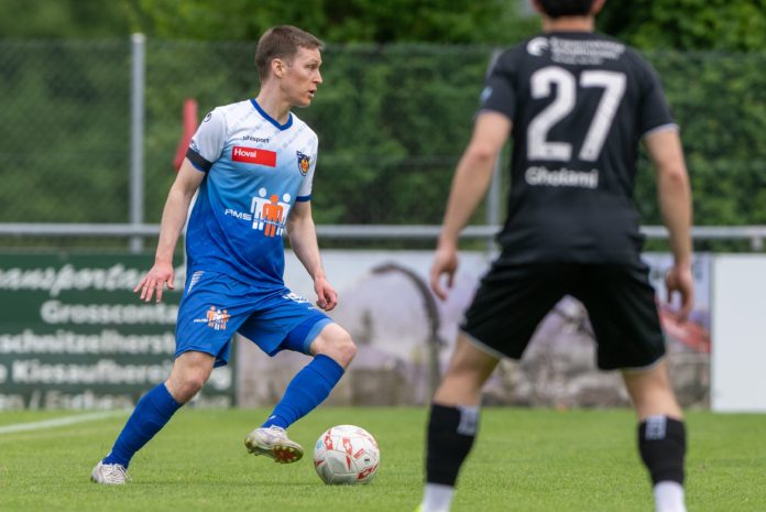 Bild: Alessandro Hossmann (USV,r.) im Zweikampf mit einem Schaffhauser. Foto: Jürgen Posch