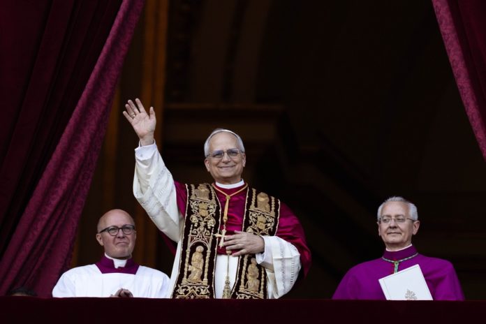 Der neu gewählte Papst Leo XIV, ist US-Amerikaner, und heisst mit bürgerlichem Namen Robert Prevost. Hier sehen wir den Heiligen VATER unmittelbar nach der Wahl auf auf dem Balkon der St. Peterskathedrale. Foto: Picture Alliance, Frankfurt/Main.
