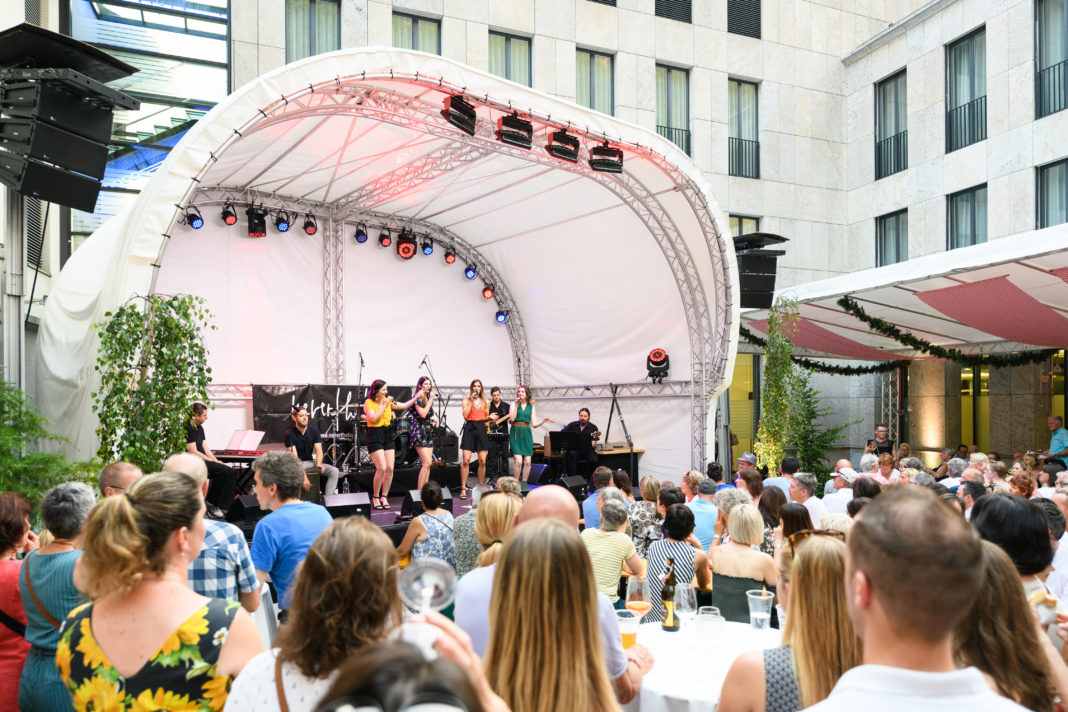 Der Innenhof des LLB-Hauptsitzes verwandelt sich alle Jahre wieder in ein kleines, aber feines Open-Air-Festival. Ausgelassen tanzen unter freiem Himmel – und das mitten in Vaduz: Vom 26. bis 28. Juni heizen an drei Sommerabenden unterschiedliche Bands den Gästen im Innenhof der LLB ein.