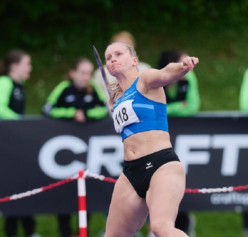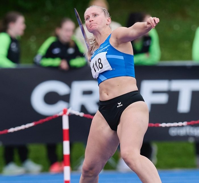 Bild: Julia Rohrer vom LC Schaan beim Speerwurf. Sie hat mit einer Weite von 47.59m Bewerb gewonnen. Bild: Michael Zanghelini
