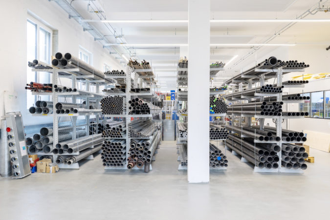 «Wir haben grossen Wert auf eine nachhaltige Energienutzung gelegt. Entstanden ist schliesslich ein Gebäude im Minergie-P-Standard», sagt Oliver Bossi. «Beispielsweise nutzen wir das Grundwasser zum Heizen wie zum Kühlen und speisen es anschliessend ins Netz ein. Zwei Nachbargebäude profitieren ebenfalls von dieser Lösung.» Giuseppe Cortese ergänzt: «Wichtig für die Aufenthalts- und damit Arbeitsqualität war uns neben der natürlichen sowie künstlichen Beleuchtung in Werkstatt wie Büros auch die Akustik. Direkt an der Hauptstrasse ist ein ausreichender Lärmschutz von grosser Bedeutung. Das konnten wir von aussen her durch entsprechende Fenster erreichen. Im Inneren sorgen Teppiche, Deckenpanele und Akustikwände für eine ruhige Atmosphäre.» Den Arbeitsabläufen überaus dienlich ist ausserdem die Tatsache, dass nun alle zusammengehörigen Arbeitsplätze bei der A. Vogt Gebäudetechnik AG jeweils auf einer Etage vereint sind.