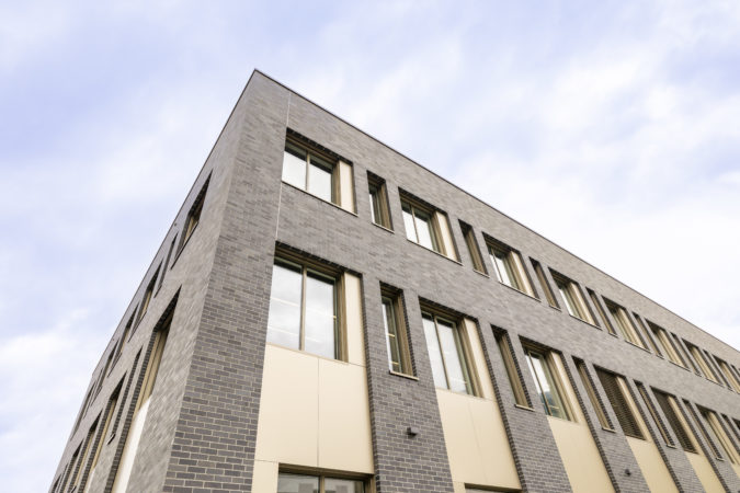 Grossen Augenmerk haben Oliver Bossi und Giuseppe Cortese auch auf die Optik des Gewerbehauses gerichtet. «Die robuste und geradlinige Gebäudehülle spiegelt das im Inneren betriebene Handwerk wider. Das Farbspiel an Fassade, Staketen und Rollläden gibt dem Ganzen einen edlen Touch», sagt Giuseppe Cortese. Oliver Bossi verweist seinerseits auf das Doppelschalenmauerwerk der Fassade, das optisch mit dem Spar-Supermarkt und den anderen Baukörpern desselben Ensembles harmoniert. «Diese Gebäude stammen ursprünglich ebenfalls von der ITW. Wir haben darauf geachtet, dass sie als zusammengehörig wahrgenommen werden und das Gewerbehaus sich dennoch abhebt. Vom Vorschlag, den Edgar Hasler für die Optik gemacht hat, waren wir von Anfang an begeistert, und die Umsetzung ist ihm sowie den beteiligten Handwerkern grossartig gelungen. Selbst, wenn dies einen immensen Arbeitseinsatz bedeutet hat. In der Fassade ist beispielsweise jeder Stein einzeln von Hand gesetzt, was sie äusserst langlebig macht.»