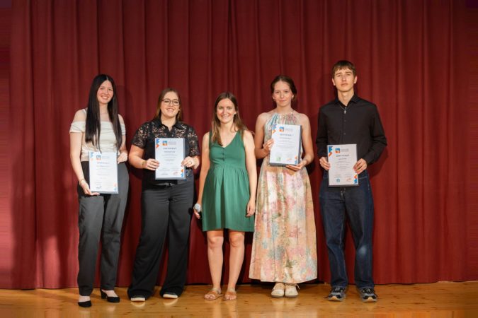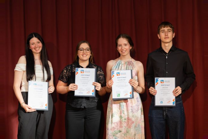 Moderiert wurde der Abend von Andrea Strobl-Elmer vom aha – Tipps & Infos für junge Leute. Neben einem persönlichen Gespräch mit den vier Freiwilligen gab es auch einen unterhaltsamen Rückblick auf den gemeinsamen FSJ-Ausflug nach Konstanz, der im Rahmen von DiscoverEU Inclusion stattfand. Ein interaktives Quiz sorgte für gute Stimmung unter den Gästen. Den feierlichen Höhepunkt bildete die Übergabe der offiziellen FSJ-Zertifikate im Beisein von Familien, Freund:innen und Vertreter:innen der Einsatzstellen.