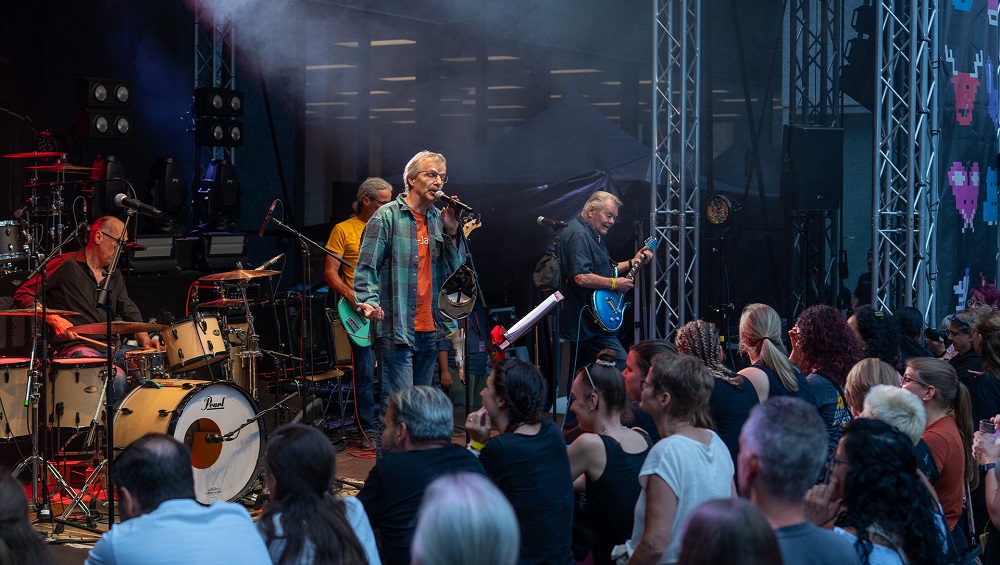 Der Start am Mittwoch verlief trocken und energiegeladen. Den Auftakt machten die Fine Young Gäässler Guga. Nach 30 Jahren Bühnenpause meldete sich die Liechtensteiner Kultband eindrucksvoll zurück. Mit Verstärkung von Gustl Pomberger an der Gitarre und Stefan Frommelt am Keyboard lieferten sie einen groovigen Auftritt.