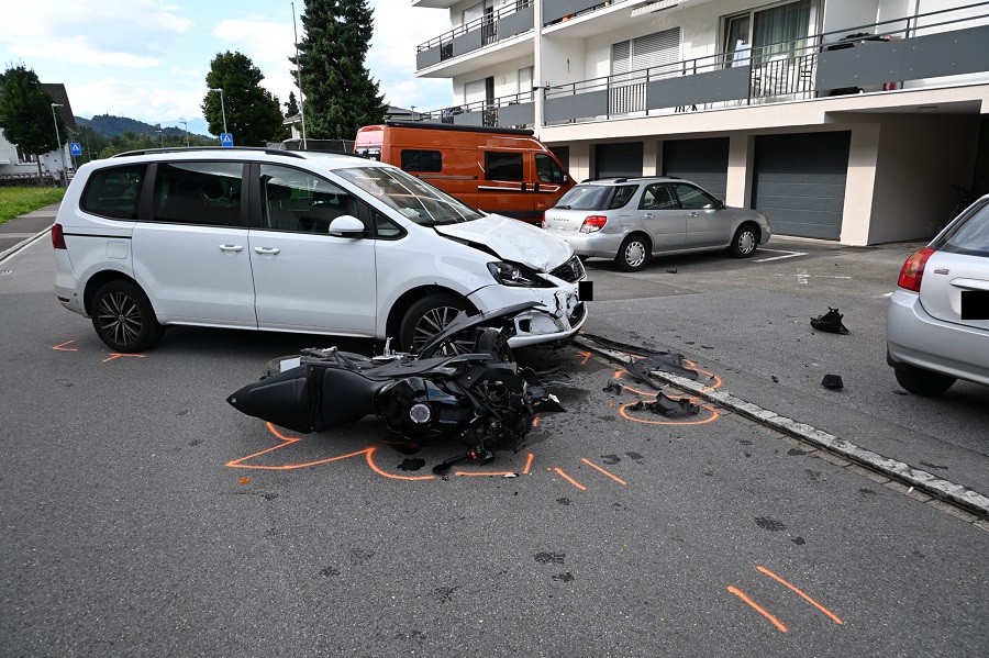 Am Personenwagen entstand ein Sachschaden und am Motorrad ein Totalschaden.