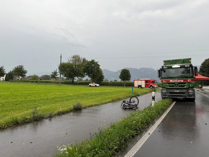 Diepoldsau – Am Samstag (19.07.2025), kurz vor 15:45 Uhr, hat die Notruf- und Einsatzleitzentrale St.Gallen die Meldung von einem Unfall zwischen einem E-Bike und einem Lastwagen auf der Balgacherstrasse, Höhe Einmündung Binnenkanalstrasse, erhalten. Ein 82-jähriger E-Bike-Fahrer kam beim Unfall ums Leben.