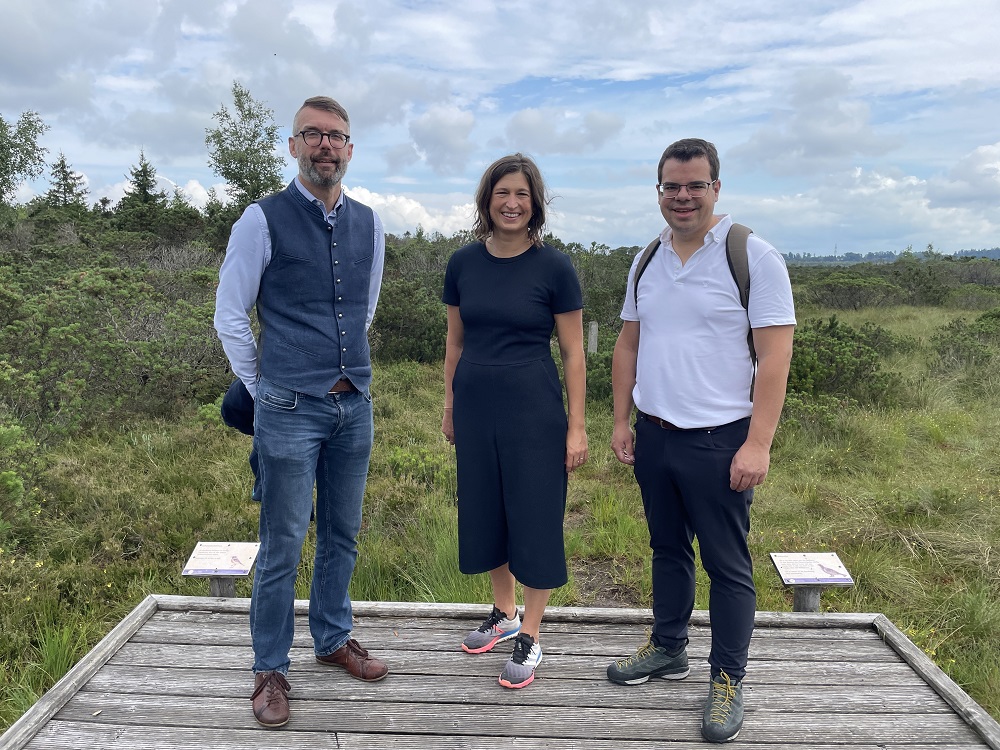 Wie lassen sich Naturschutz und Besucherinteresse in Einklang bringen? Diese Frage stand im Zentrum eines spannenden Austauschs, der am vergangenen Freitag im bayerischen Naturschutzgebiet Kendlmühlfilzen bei Grassau, nahe des Chiemsees stattfand. Organisiert wurde das Treffen vom Gemeindenetzwerk Allianz in den Alpen (AidA). Mit dabei waren der Bürgermeister von Grassau, Stefan Kattari, der Ruggeller Gemeindevorsteher Christian Öhri sowie die AidA-Vertreterinnen Katharina Gasteiger und Maya Simon.