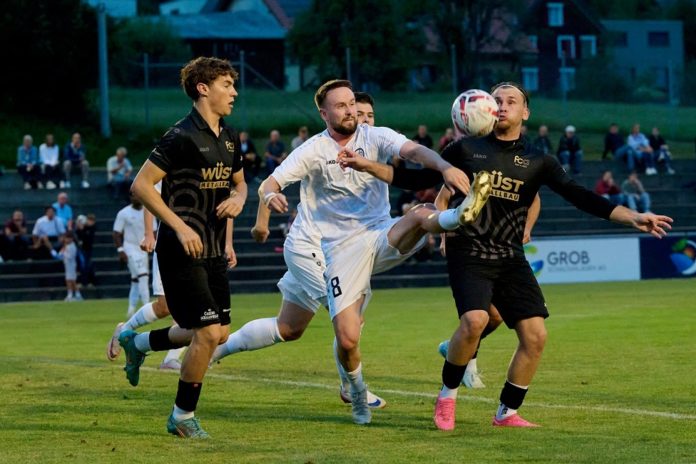 Bild: (Mitte) Fabio Wolfinger nimmt im FCB-Team eine dominierende Rolle ein. Hier eine Szene vom Spiel am letzten Mittwoch in Altstätten. Foto: Michael Zanghellini