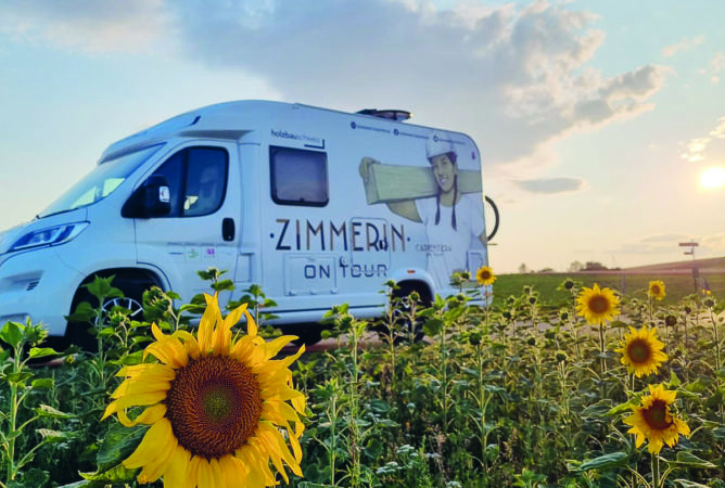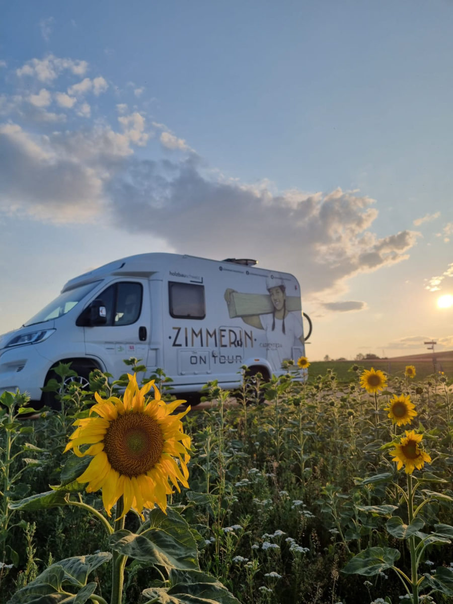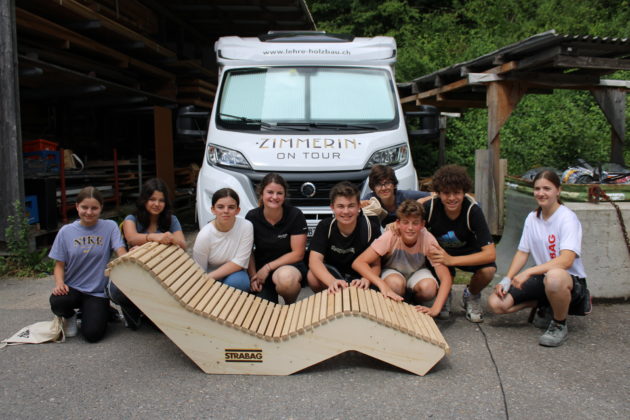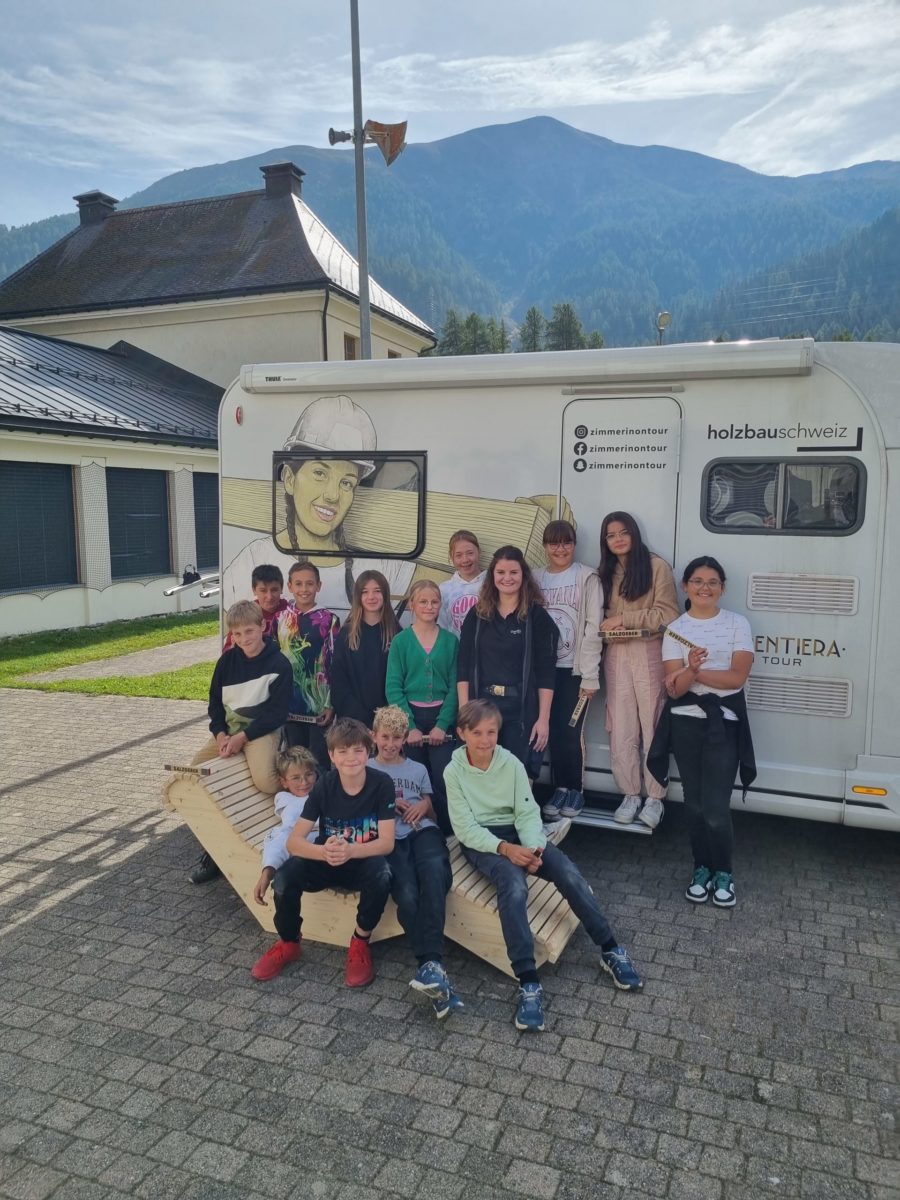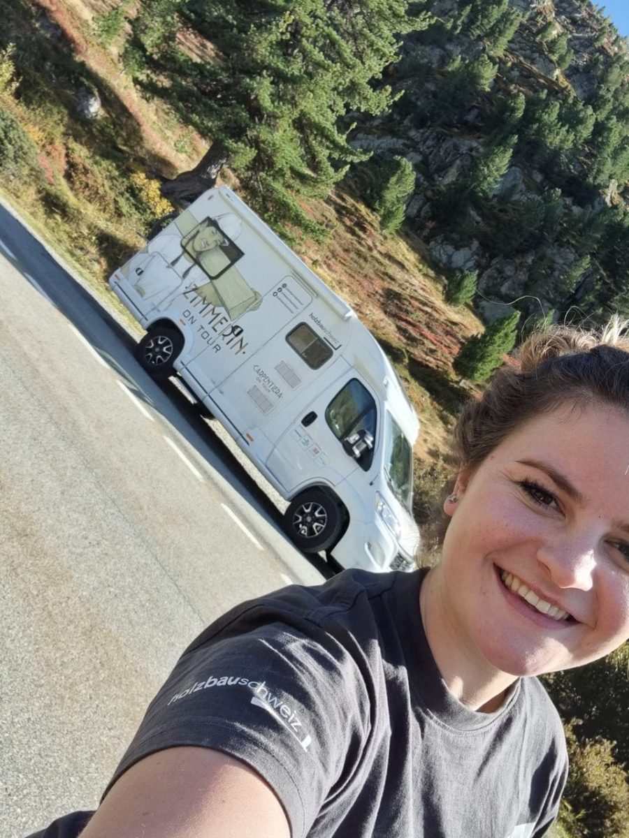 Ja. Es ging so. Eines Tages nach abgeschlossener Lehre und ein paar Jahren Berufserfahrung wurde ich am Businesstag für Frauen in Vaduz auf die ausgeschriebene Stelle beim Verband Holzbau Schweiz angesprochen. Das Berufsmarketingprojekt Zimmerin on Tour – inspiriert von der traditionellen Wanderschaft, aber modern interpretiert, um den Nachwuchs zu fördern, eine Tour durch die ganze Deutschschweiz im Camper – mein Zuhause auf vier Rädern für acht Monate. Ich war sofort angetan von dieser grossartigen Tour und wollte raus, lernen, wachsen und dabei auch andere inspirieren. Dass daraus Begegnungen mit über 80 Schulen, internationale Projekte und sogar Arbeiten im Hochgebirge wurden, hätte ich nie gedacht. Aber es zeigt, dass man mit Herz, Handwerk und Offenheit weit kommen kann – oft auch an Orte, an die man nie geplant hatte zu gehen.