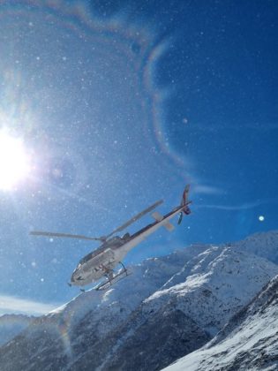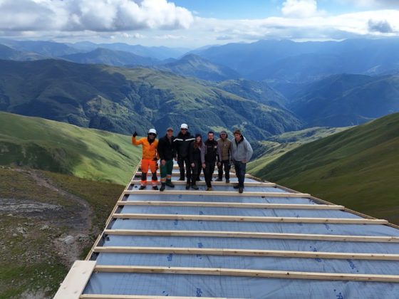 Wir waren sehr wetterabhängig und hatten nur per Funk teils Kontakt. Als ich im Sommer in Georgien war, stellten wir Berghütte vier und fünf auf. Im Oktober konnte ich nochmals nach Georgien reisen. Das war fast noch mehr Abenteuer als im Sommer, denn als ich ankam, nach einer siebenstündlichen Offroad Anreise zur Unterkunft in den Bergen über einen der gefährlichsten Pässe der Welt, begann es plötzlich zu schneien. Wir ergänzten noch das Dach der sechsten Berghütte, bevor wir leider abbrechen mussten. Unser Rückweg von der gebauten Hütte bis zur Unterkunft begann mit einer Wanderung durch 40 cm Schnee entlang eines schmalen Bergweges und endete mit einer Rettungsaktion mit dem Helikopter – Nervenkitzel pur also. Am nächsten Morgen mussten wir bei minus 7 Grad sogar den Helikopter von Hand mittels auf einem Gasherd heiss gekochtem Wasser und Plastiktüten enteisen, damit wir über den Pass fliegen konnten, wieder Richtung Hauptstadt.