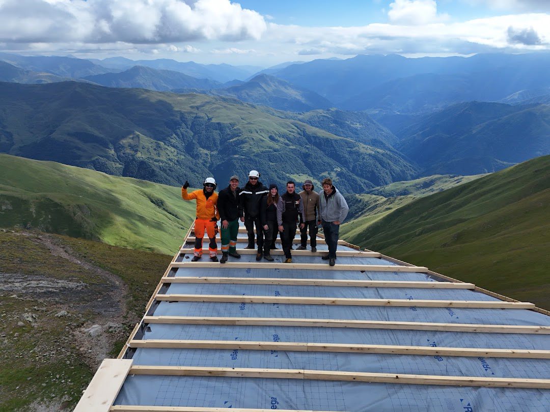 Das war eine der intensivsten Erfahrungen meines Lebens – im wahrsten Sinne des Wortes «hoch hinaus». Eine Holzbaufirma aus Wil realisiert in Georgien im Kaukasusgebirge sieben Berghütten, auf denen man später auch übernachten kann. Das Ziel des Projektes ist es den Tourismus zu fördern. Man kann auf einer mehrtägigen Tour durch den wunderschönen Kaukasus wandern, von Hütte zu Hütte. Auf meiner Tour als Zimmerin on Tour habe ich vom Projekt erfahren und durfte letztes Jahr vier Wochen lang mitarbeiten. Wir haben in Höhen gearbeitet, wo einem buchstäblich die Luft wegbleibt – nicht nur wegen der körperlichen Anstrengung, sondern auch wegen der Aussicht. Der Kaukasus ist majestätisch. Die Dörfer liegen eingebettet in einer Natur, die einen Demut lehrt. Das erste Mal flog ich im Juli nach Georgien in die Hauptstadt Tiflis, von dort reiste ich zuerst zwei Wochen quer durch Georgien, um das Land kennenzulernen. Anschliessend fuhr ich dann mit meinen Arbeitskollegen und einem topausgebildeten Rega-Piloten, die aus der Schweiz angereist sind, ins Gebirge nahe der russischen Grenze nach Akheli. Dort schliefen wir in einem Guesthouse und der Heli stand im Garten, das war schon cool.