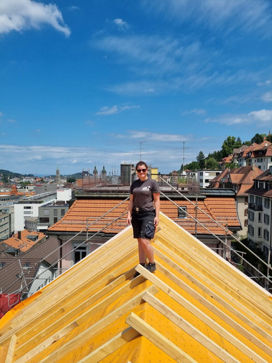 Lara Zwiefelhofer: Das war ehrlich gesagt eine Mischung aus Bauchgefühl, Abenteuerlust und einem gewissen Trotz. Ich war schon immer jemand, die lieber draussen unterwegs ist, als drinnen sitzt. Während sich viele in meinem Umfeld für klassische Karrierewege interessiert haben, habe ich gemerkt, dass mich das nicht erfüllt. Ich wollte etwas machen, das greifbar ist – im wahrsten Sinne des Wortes. Zuerst ging ich dann aber in die HTL Rankweil und begann die Schule Richtung Bautechnik. In einem Sommerpraktikum merkte ich dann aber schnell, dass mich der Beruf der Zimmerin fasziniert. Holz ist ein Werkstoff mit Seele. Es lebt, riecht, knackt und verändert sich. Und als Zimmerin steht man mitten im Geschehen – man sieht nicht nur, wie etwas entsteht, man ist ein Teil davon. Als junge Frau in einem eher männerdominierten Berufsfeld hatte ich anfangs natürlich Respekt, aber auch Lust, genau das zu durchbrechen. Ich wollte beweisen, dass handwerkliches Können kein Geschlecht kennt.