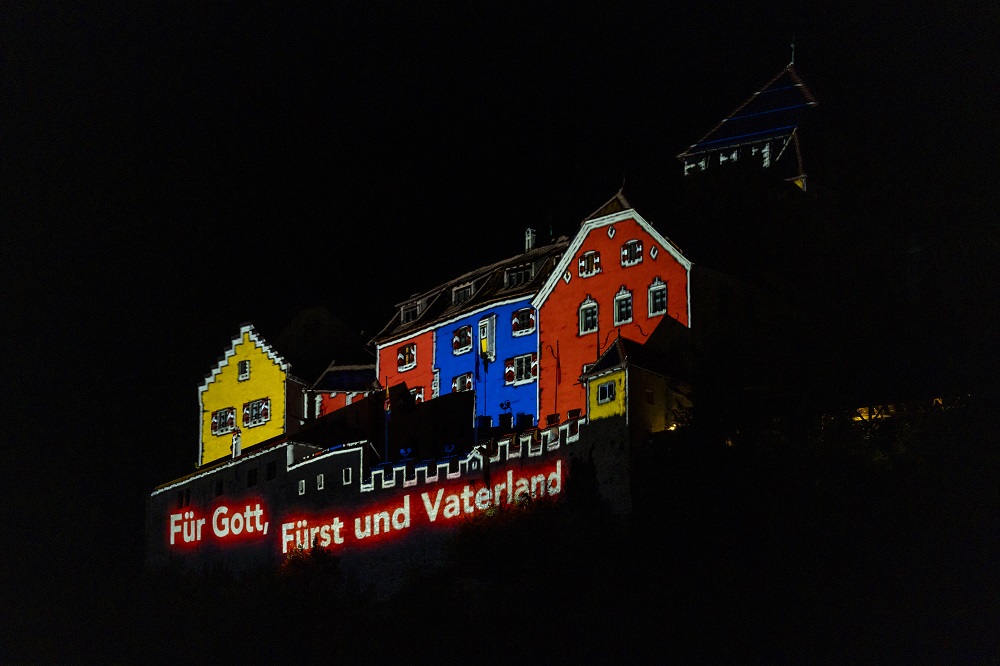Pünktlich zum Eindunkeln strahlten die ersten Lichter von den Bergspitzen. Kurz nach 21.00 Uhr beleuchtete die Bergrettung Liechtenstein mit Höhenfeuer, Fackelzug und der Krone auf Tuass das Bergpanorama. Den letzten Höhepunkt des Tages bildete das Feuerwerk, welches 25 Minuten oberhalb von Vaduz den Himmel erleuchtete.