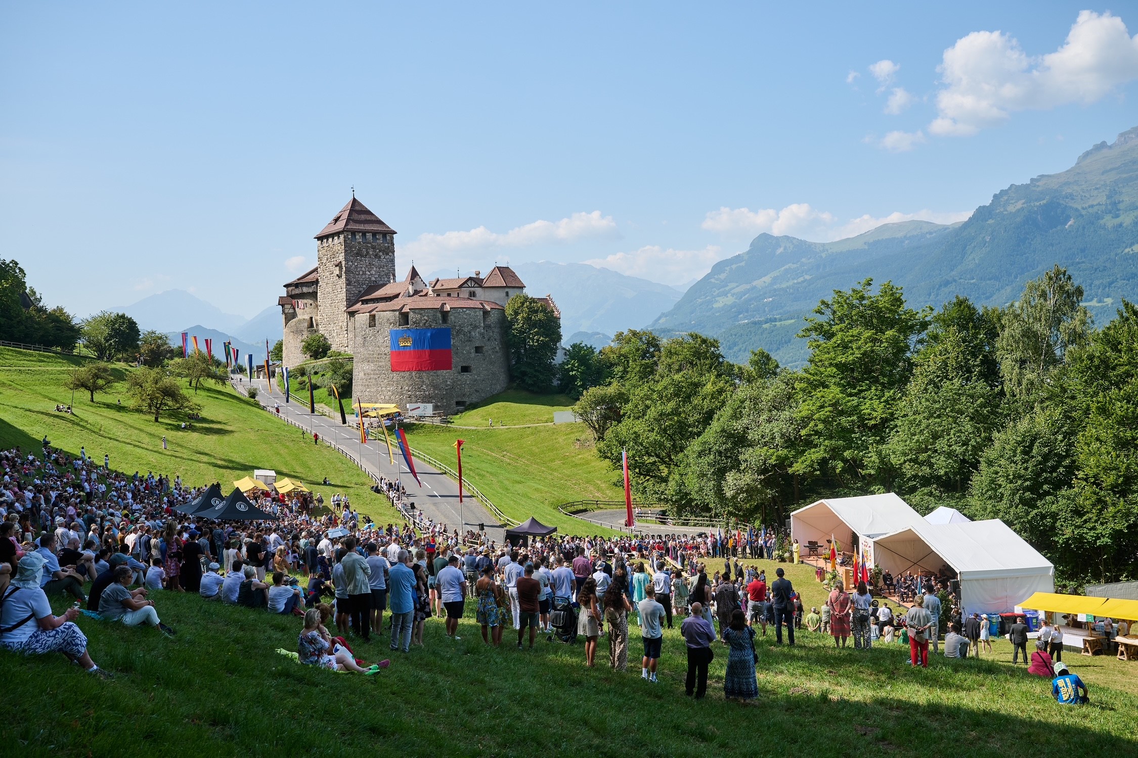 Wie jedes Jahr hat auch 2025 der Staatsfeiertag mit dem offiziellen Staatsakt auf der Schlosswiese begonnen. Unter blauem Himmel versammelten sich rund 3500 Gäste.